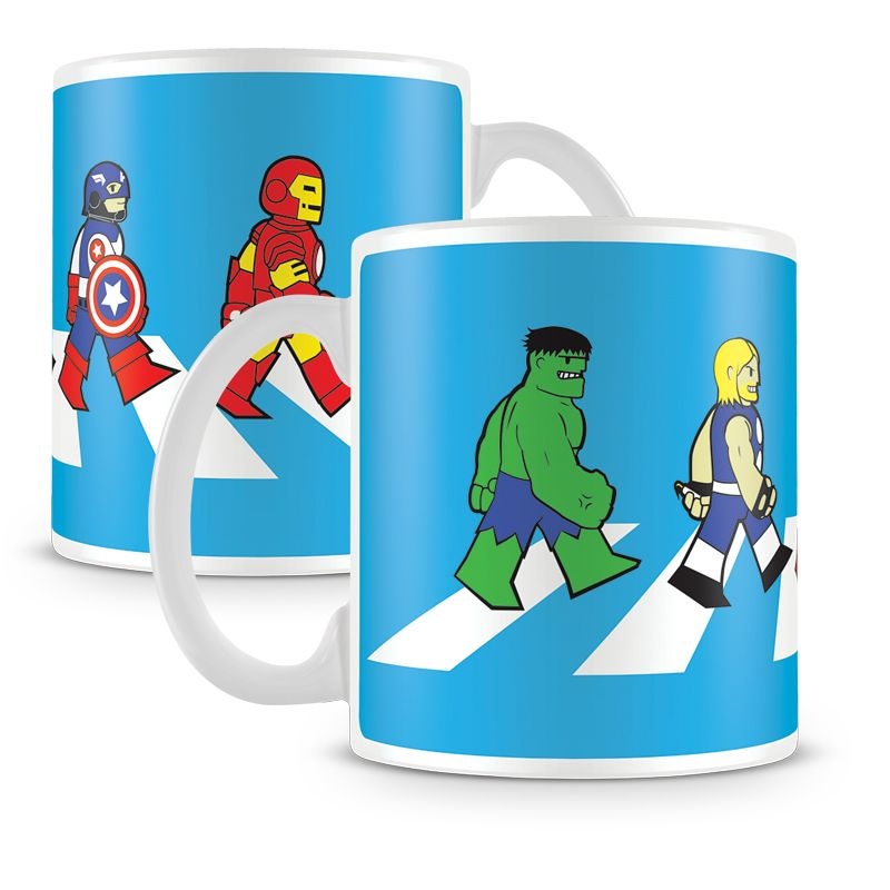 Caneca Avengers na Abbey Road! Hulk, Thor, Capitão América e Homem de Ferro! Aqueles caras da Inglaterra já fizeram muito sucesso por aqui, e ainda estão fazendo (Os Beatles). Mas agora, os Vingadores chegaram para assumir a Abbey Road.